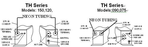 NEON TRANSFORMER WITH UL2161 COMPLIANT SERVICE SWITCH To activate service mode: while the transformer is on, depress and hold the switch for 1 second and release. The tubing will flash on 3 times to indicate the transformer is in service mode (SGFP circuit is disabled). The tubing should then remain on. The tube may not light if the tube is broken or shorted. The green LED will constantly flash while unit is in service mode. The unit remains in service mode for 10 minutes. After 10 minutes, the unit will return to normal mode. To escape service mode before the 10 minutes has elapsed, depress the service switch an hold for 1 second and release, or turn power off, wait for 3 seconds, then turn power on. The unit will restart in normal mode. Specifications: